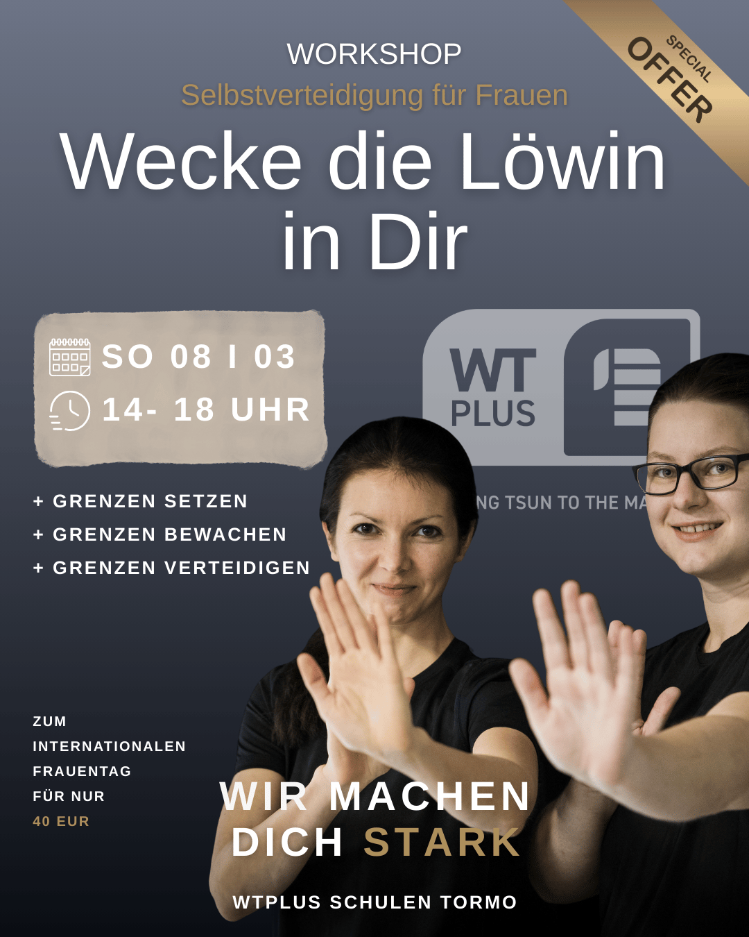 Am Samstag, 08. März 2026, anlässlich des Internationalen Frauentags, findet bei uns in Wald-Michelbach wieder unser beliebter Crashkurs „Wecke die Löwin in Dir“ statt. Dieser Workshop richtet sich an Frauen und Mädchen ab 14 Jahren, die ihre Selbstsicherheit stärken möchten – im Fokus auf Selbstbehauptung, Gefahreneinschätzung und realistische Verteidigungstechniken.